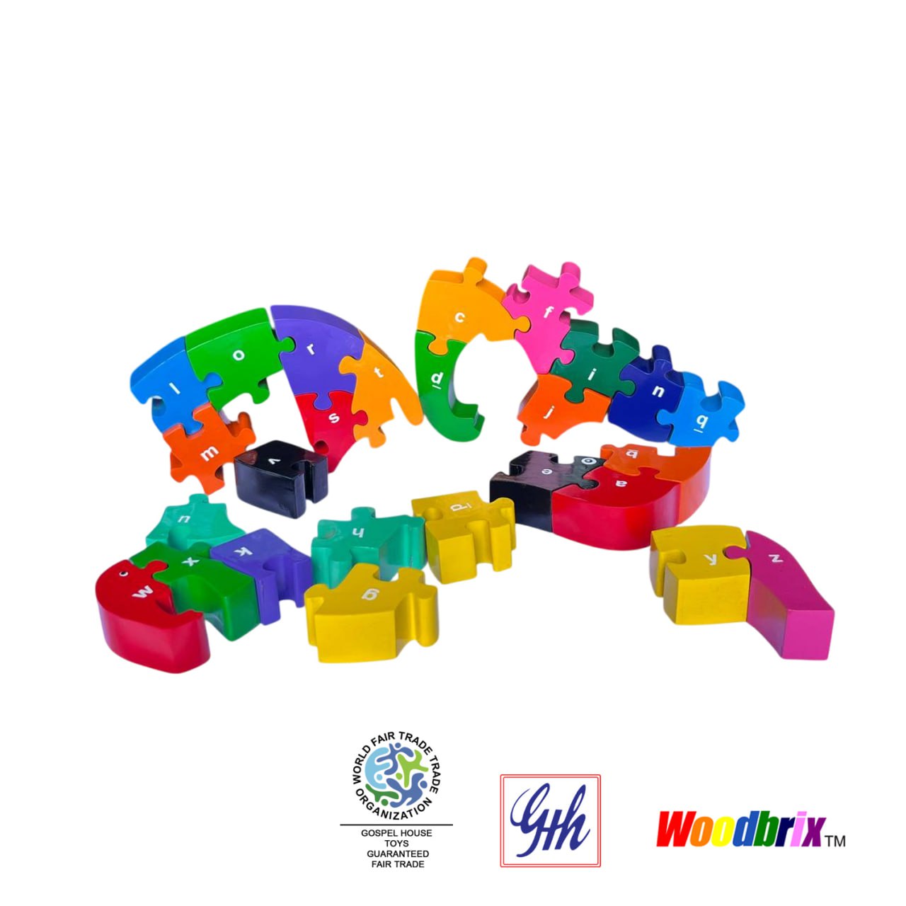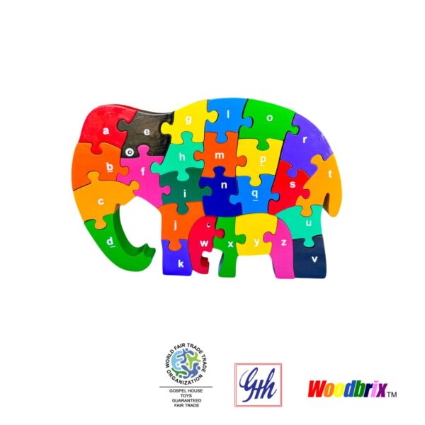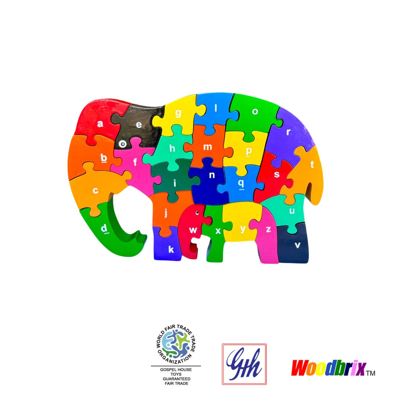 Each letter and elephant piece is carefully shaped and polished with smooth edges, making it safe for little hands. As children fit the pieces together, they develop essential skills such as letter recognition, hand–eye coordination, concentration, and problem-solving.
